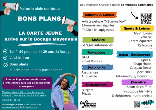 Dans le cadre de l’INFO JEUNES auprès des 11 – 29 ans, l’association MIJ met en oeuvre un dispositif intitulé « Carte Jeunes Bocage Mayennais », dont l’ambition est d’accompagner, de responsabiliser et de favoriser l’épanouissement des jeunes sur le Bocage.
