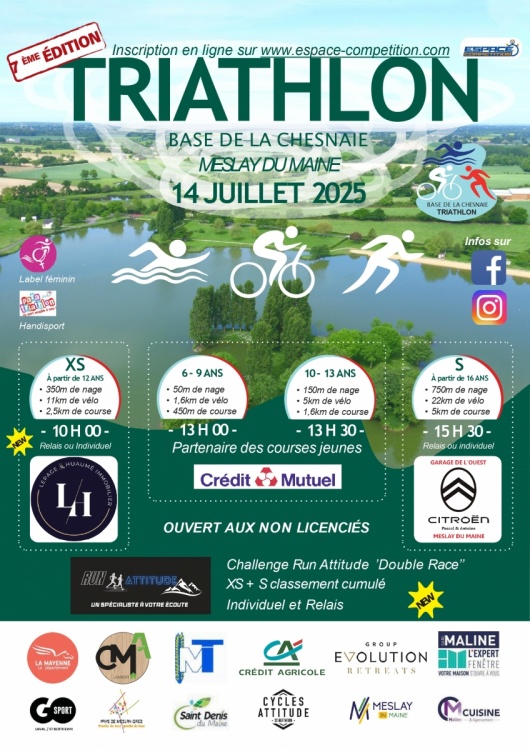 Un triathlon est organisé sur la base de loisirs de La Chesnaie à SAINT DENIS DU MAINE le 14 juillet 2025.